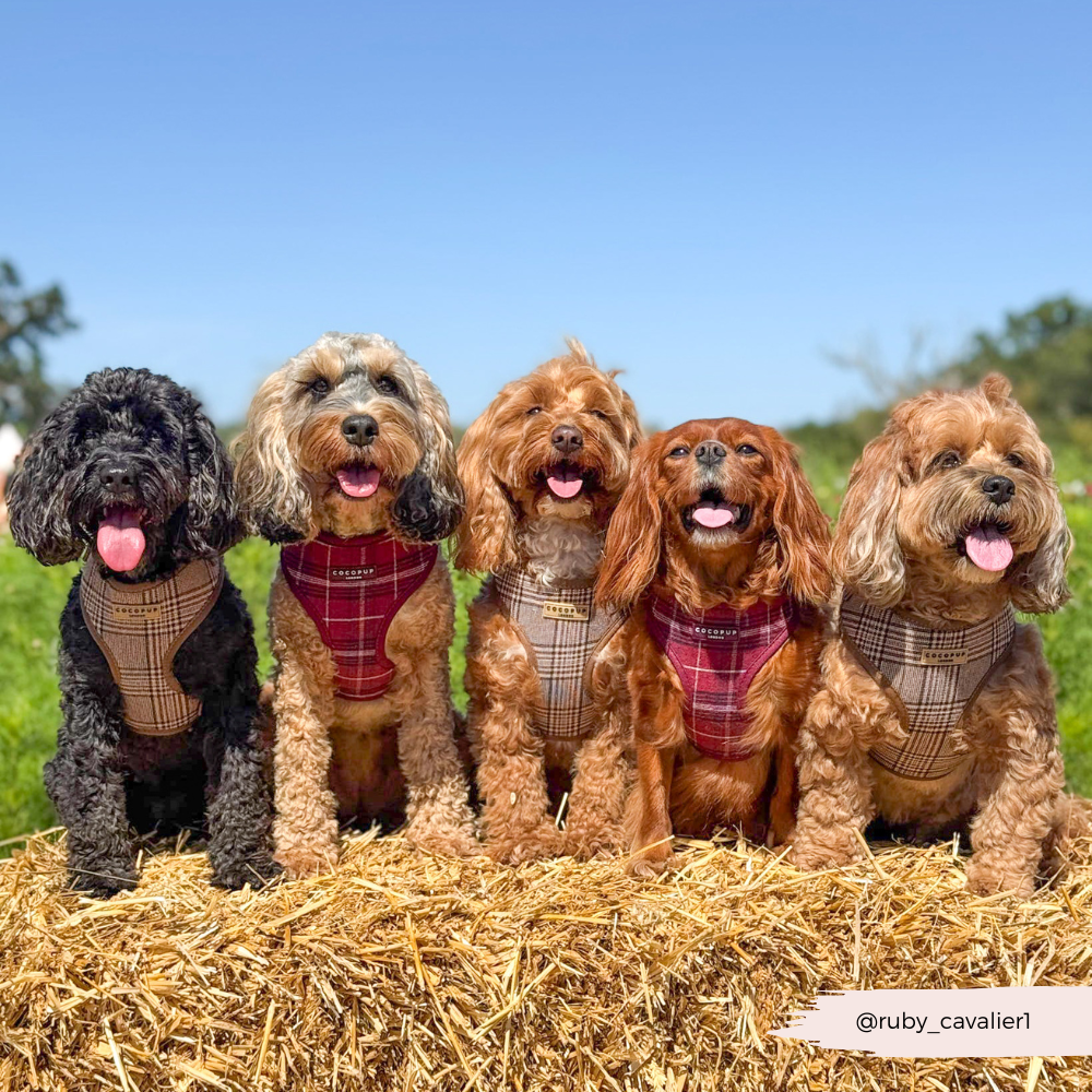 Step out in style this autumn with our Mulberry Plaid Adjustable Neck Harness, Lead & Collar Bundle. Featuring a rich deep mulberry red perfect for autumn walks, this set combines cosy plaid charm - with a safety lock on both collar and harness for extra peace of mind. Adjustable for a comfy fit, it’s the secure way to enjoy every dog walk together.
