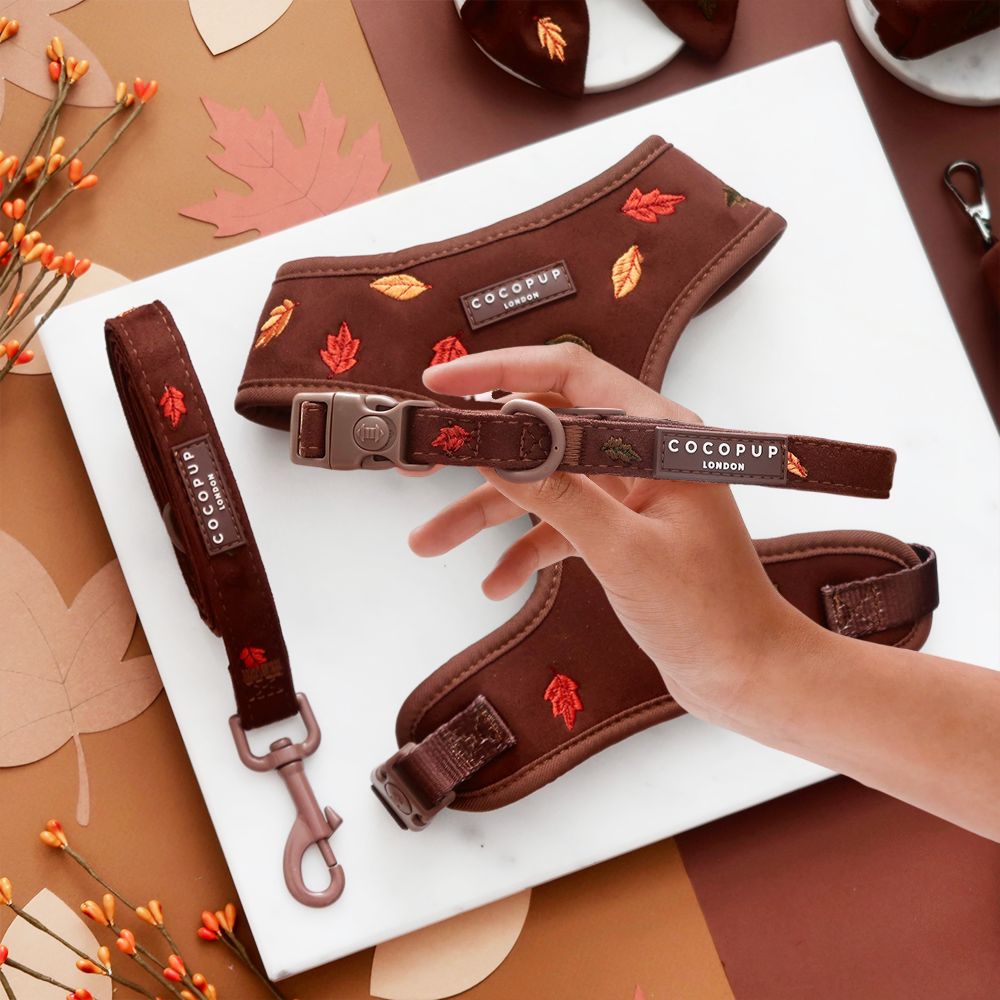 Add a splash of autumn charm to your pup’s walk with the Pawtumn Leaves Collar. In a rich chocolate brown, it features embroidered leaves that celebrate the season’s beauty. Perfect for playful strolls, it includes a safety lock buckle to keep your furry friend secure while exploring the crisp fall air.