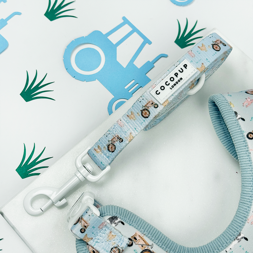 Take on countryside adventures with theĀ Barnyard Buddies Lead. This cheerful blue design brings the charm of rural life to every walk, featuring tractors, cows, pigs, ducks, and chickens, it captures that spring time spirit. Whether you're strolling through the countryside or enjoying a country pub lunch, this lead combines practical durability with delightful character that'll have other dog walkers smiling.