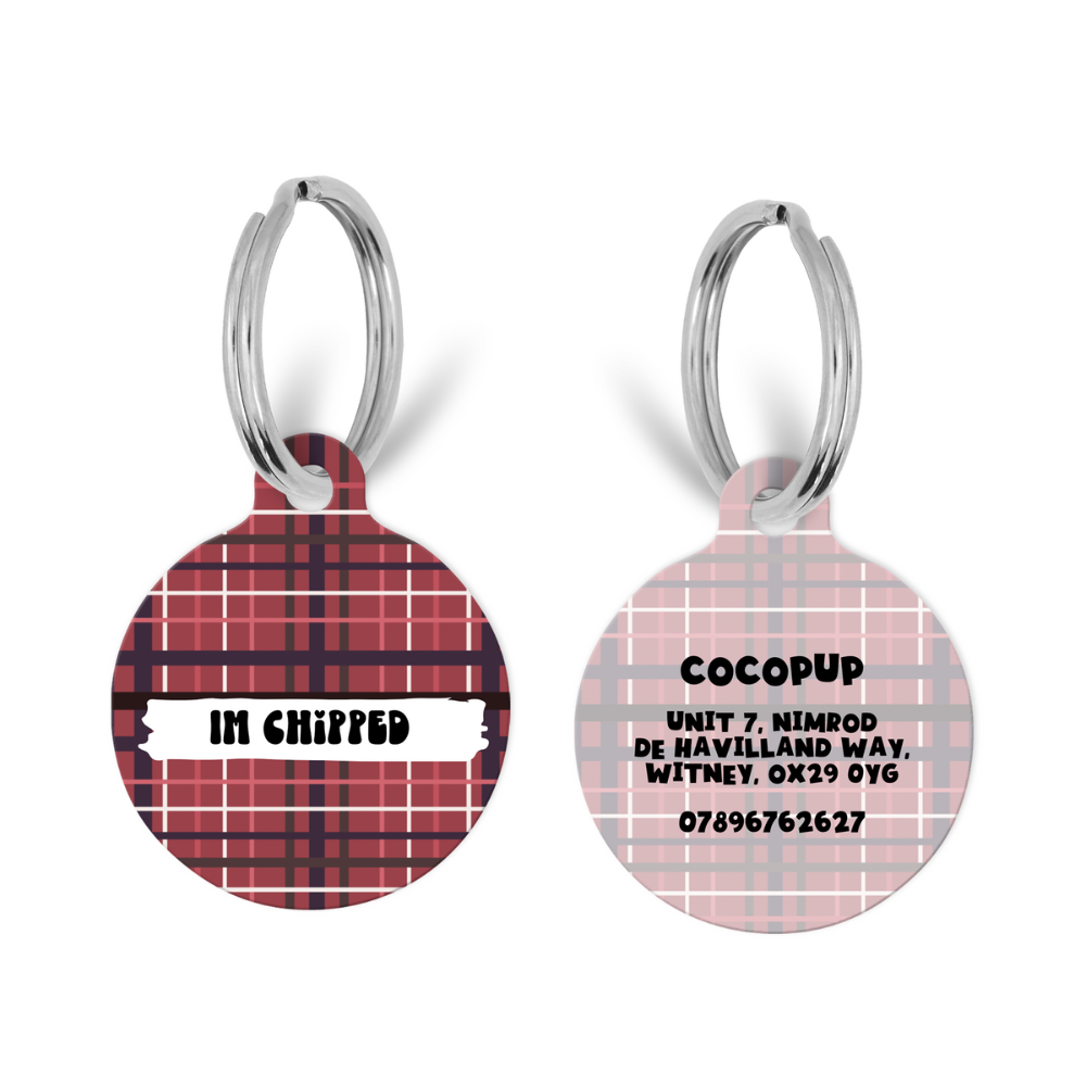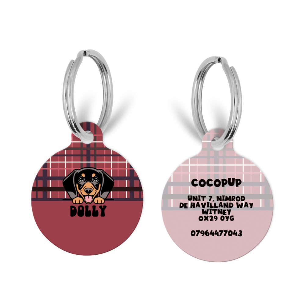 Personalised Dog Cartoon ID Tag - Mulberry Plaid