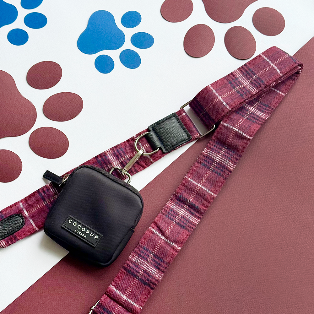 Our Bag Bundle includes: Black Dog Walking Bag, Black Treat Pouch & Mulberry Plaid Strap (with inbuilt poop bag dispenser!)