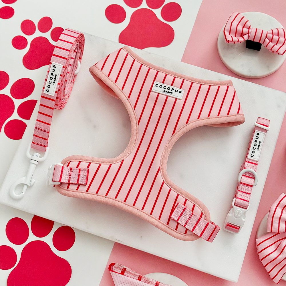 Candy Stripe Adjustable Neck Harness, Lead & Collar Bundle