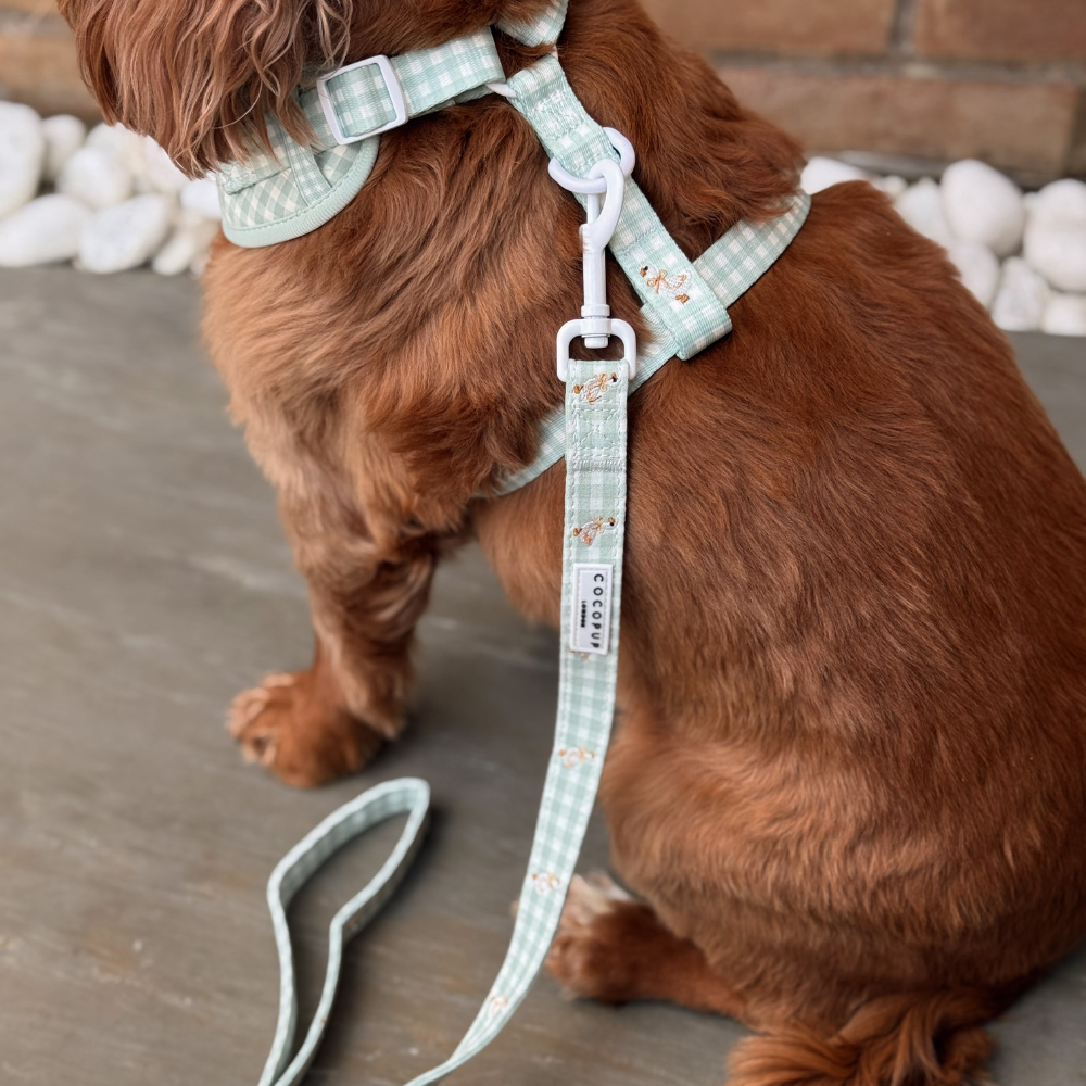 This springtime essential brings a splash of countryside charm to every adventure! Featuring a cheerful green and white gingham with sweetly embroidered geese. Perfect for pups who deserve something special, it transforms routine walks into heartwarming moments that capture attention and affection.
