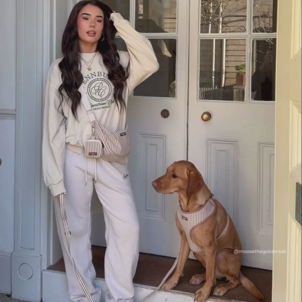 Strut through the city in style with the London Linen Stripes Adjustable Neck Harness. Featuring classic chestnut brown stripes, this on-trend piece is the ultimate spring transition for the fashion-forward pup. It’s a trending take on a daily essential, merging high-end neutral aesthetics with functionality.