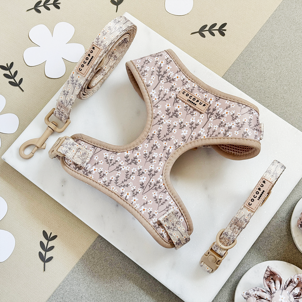 Let your pup strut in style with our Nude Flowers Adjustable Neck Harness!With this delicate floral design, this Harness will turn heads and keep your furry friend comfortable. Perfect for walks, dog park visits, and casual outings.